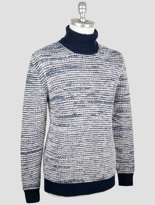 Kiton Cashmere Turtleneck Blue White Italian Handmade Sweater