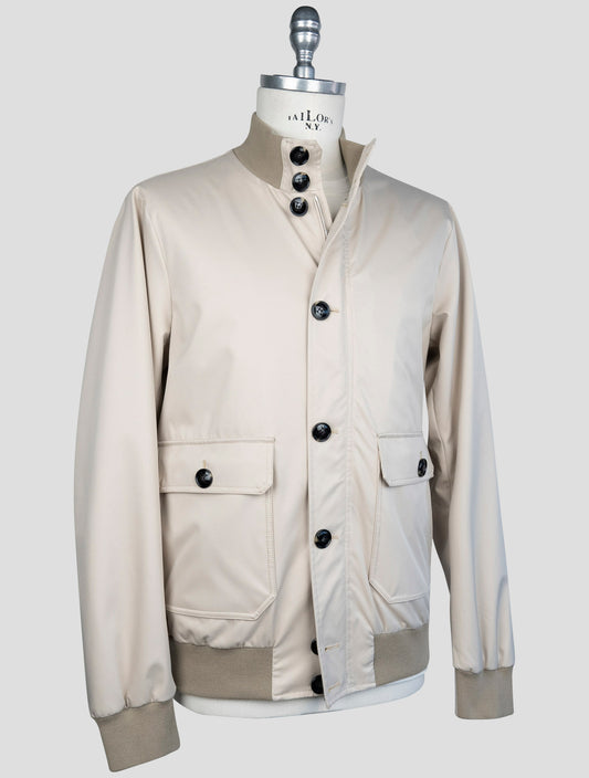 Kiton Beige Polyester Coat - Lightweight Water-Resistant Italian
