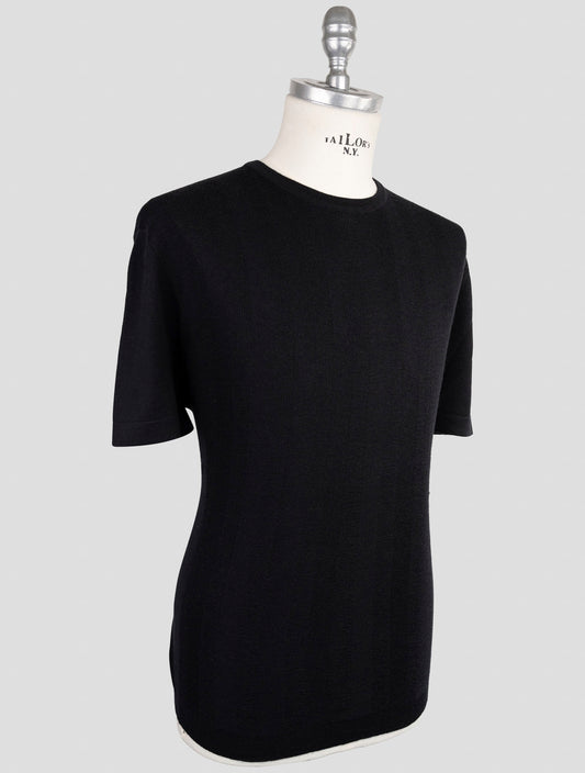 Kiton KNT Black Viscose Wool Long Sleeve T-Shirt - Handmade Italy