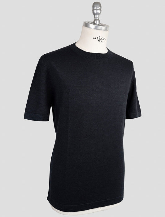 Kiton KNT Blue Wool Silk T-Shirt - Handmade Italian Regular Fit