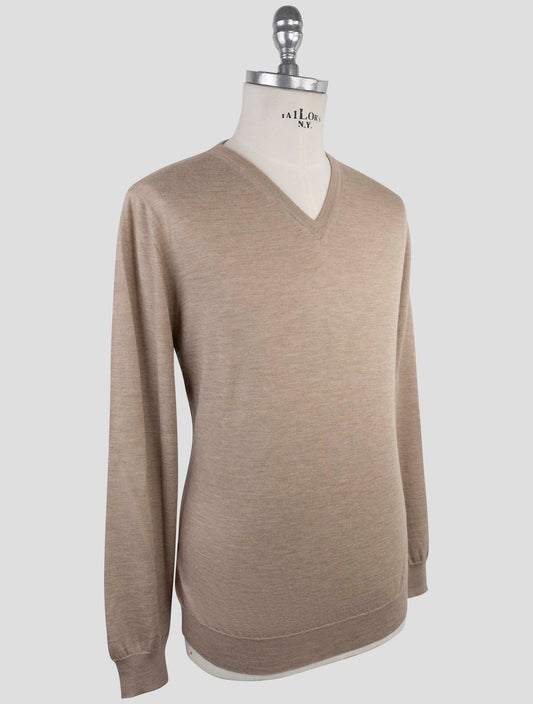 Pull V-Neck Beige en Cachemire et Soie Kiton - Tricot de Luxe