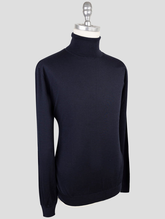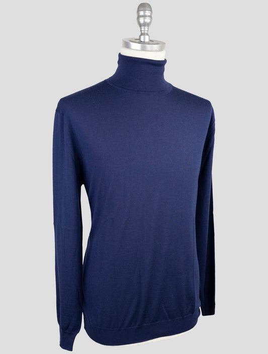 Pull Col Roulé en Cachemire et Soie Bleu Kiton