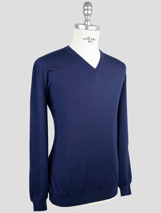 Pull V-Neck en Cachemire-Silk Bleu Kiton