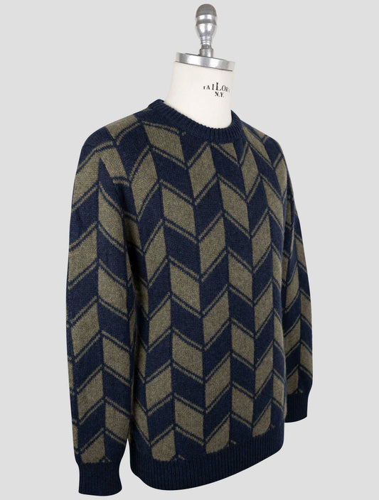 Kiton Luxury Cashmere Silk Geometric Crewneck Sweater Blue Green