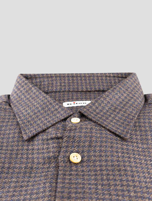 Kiton Handmade Cashmere Silk Linen Shirt Pied de Poule Blue Brown