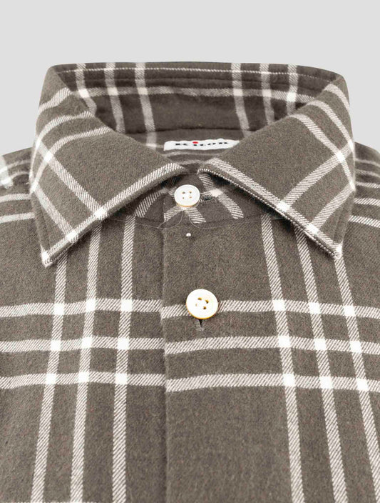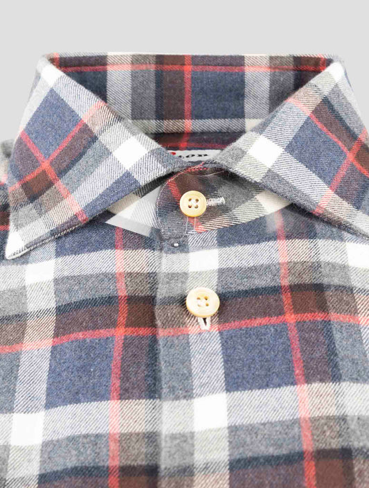Kiton Gray Check Cotton Dress Shirt Handmade Italy Regular Fit