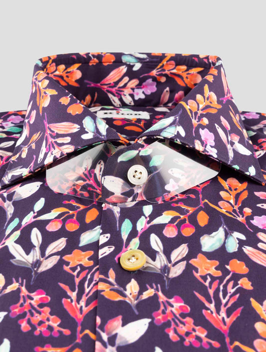 Kiton Handmade Cotton Floral Shirt Men's Regular Fit Italian