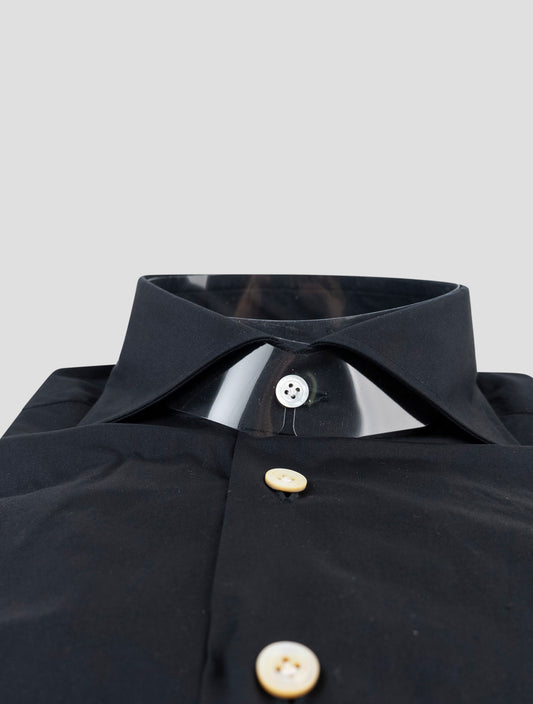Kiton Premium Black Cotton Dress Shirt - Italian Tailored Fit