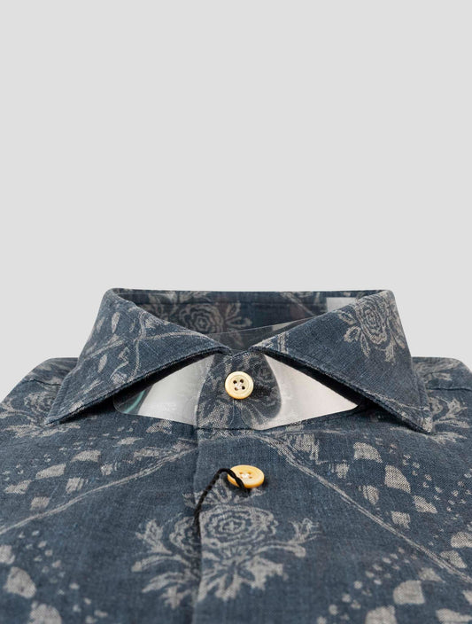 Kiton Blue Floral Cotton Shirt - Handmade Italian Regular Fit
