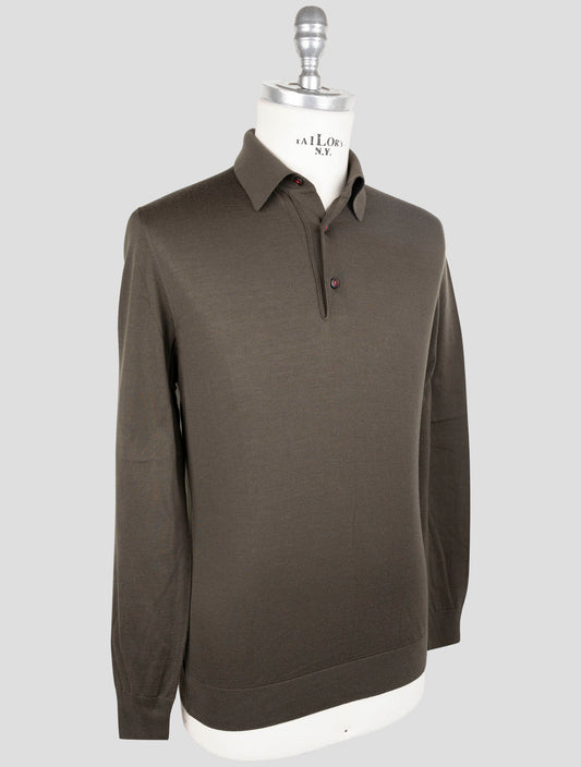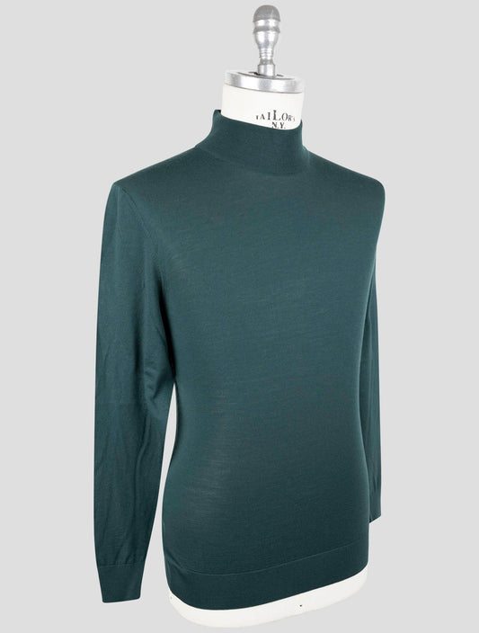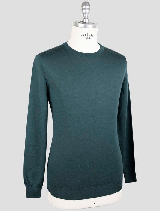 Kiton Premium Wool Full Zip Sweater Dark Green Diamante Blu Italian