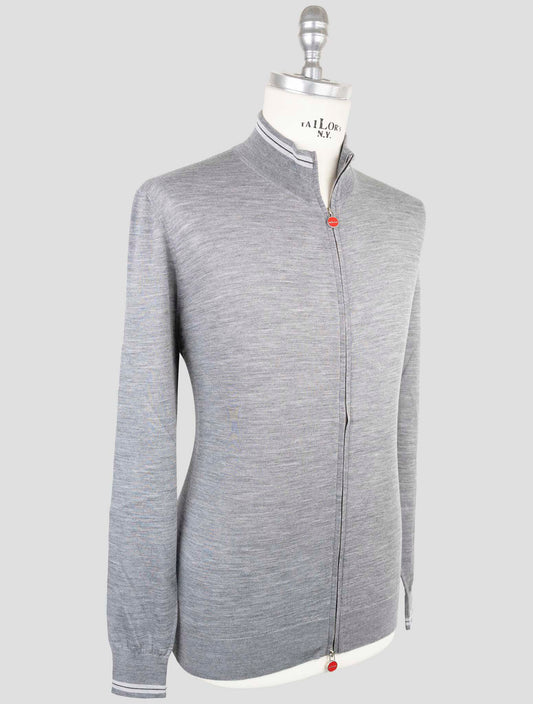 Kiton Gray Wool Full Zip Cardigan Sweater - 14 Micron Italian
