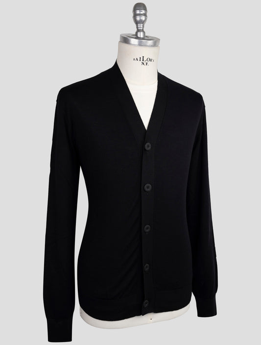 Kiton KNT Black Cotton Cardigan - Italian Handmade Men's Sweater