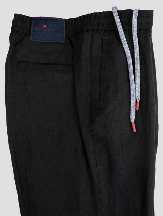 Kiton Premium Black Linen Pants - Italian Handmade Button Detail