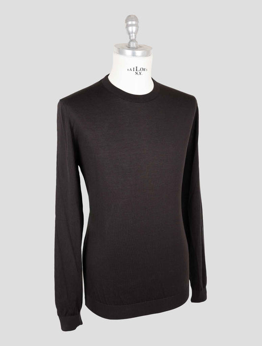 Kiton Brown Silk Crewneck Sweater - 100% Pure Silk Italian Luxury