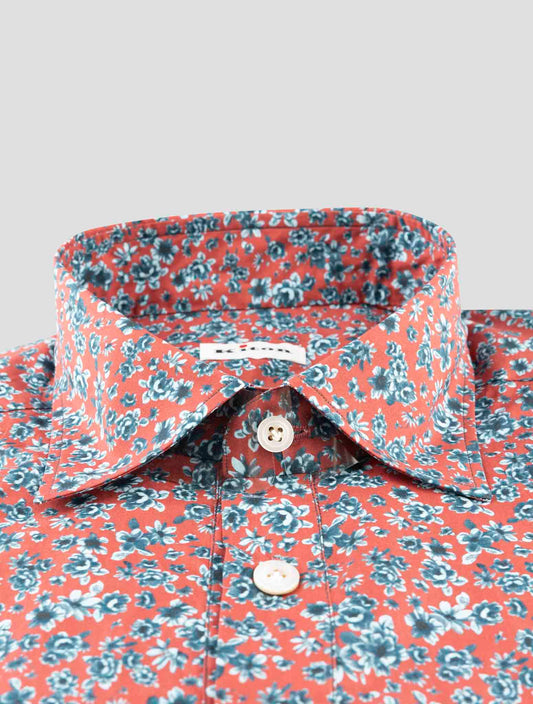 Kiton Handmade Blue Floral Cotton Dress Shirt - Italian Premium