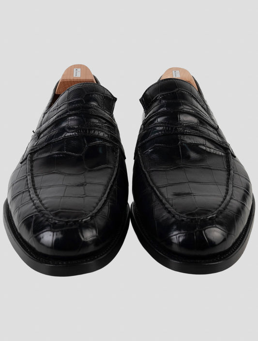 Kiton Handmade Italian Crocodile Suede Leather Loafers Black
