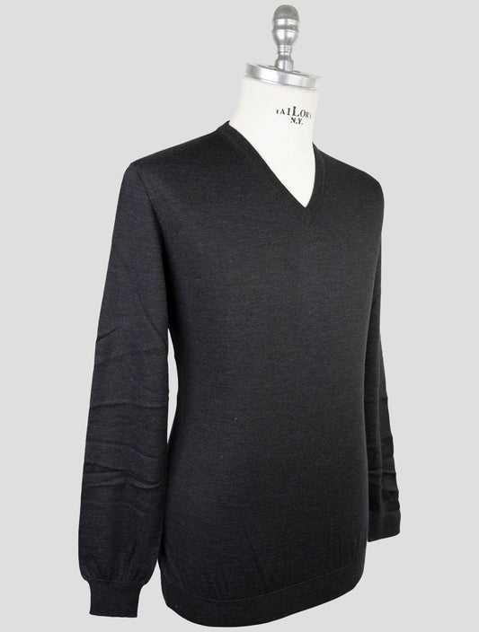 Kiton Luxury Cashmere Silk V-Neck Sweater Dark Gray Italian
