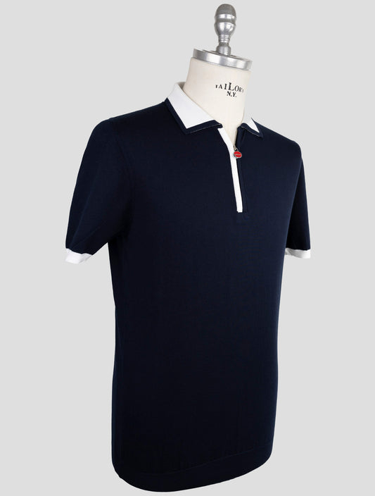 Kiton Premium Cotton Half-Zip Polo Shirt - Blue Italian Luxury