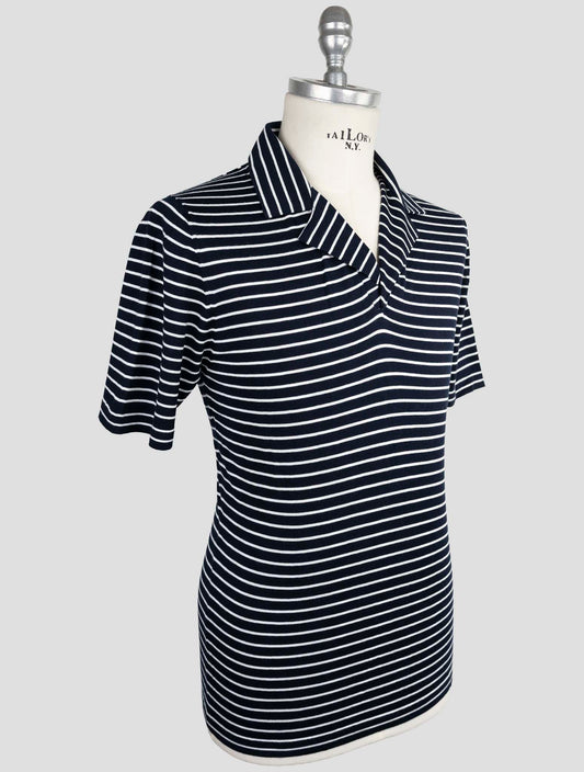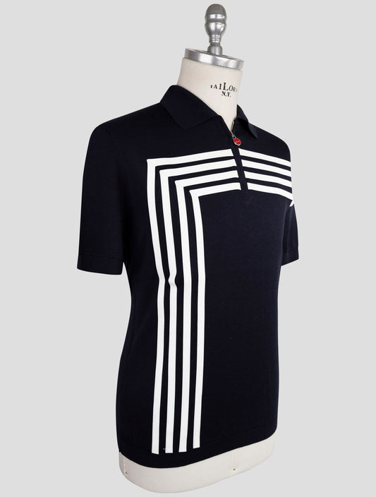 Kiton Premium Cotton Polo Shirt - Blue White Striped Italian