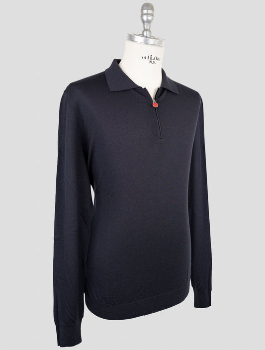 Kiton Blue Wool Half-Zip Sweater - Italian Handmade Pure Wool