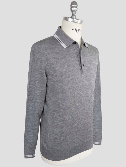 Kiton Premium Gray Wool 14 Micron Polo Sweater Diamond Blue