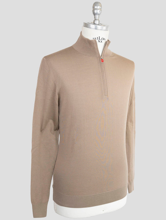 Kiton Premium Wool Half-Zip Sweater Brown 14 Micron Diamante