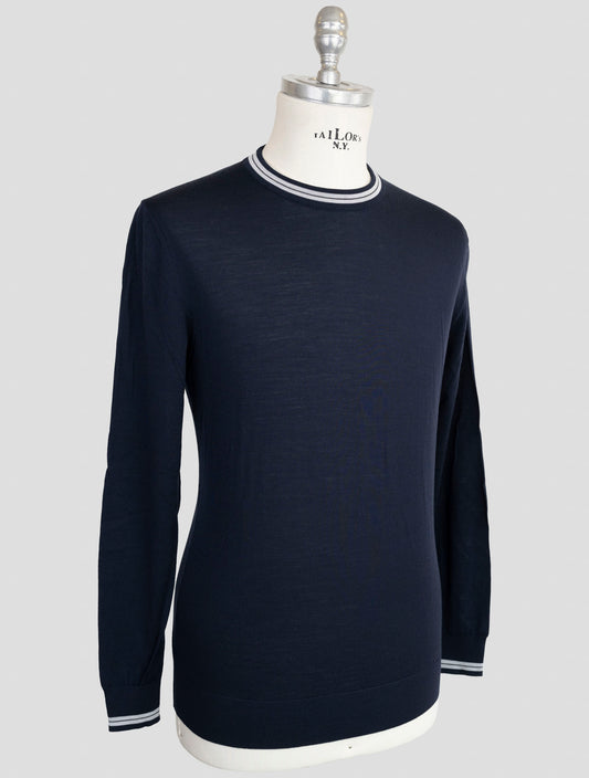 Kiton Blue 14-Micron Wool Crewneck Sweater - Diamante Texture