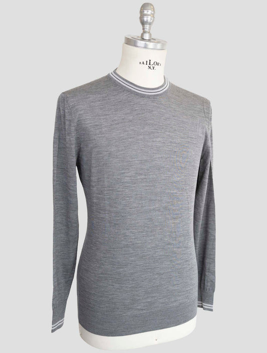 Kiton Gray Wool Crewneck Sweater - 14 Micron Diamante Blu