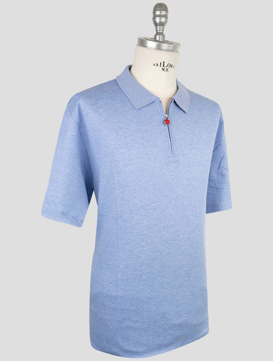 Kiton Light Blue Silk Cotton Polo - Italian Luxury Menswear