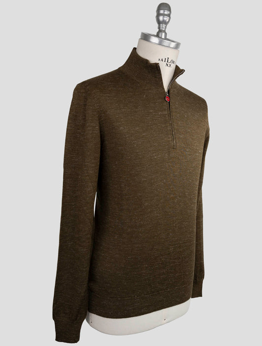 Kiton Men's Green Silk Cashmere Half Zip Sweater Italian Made