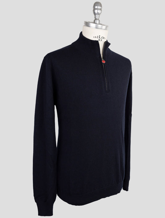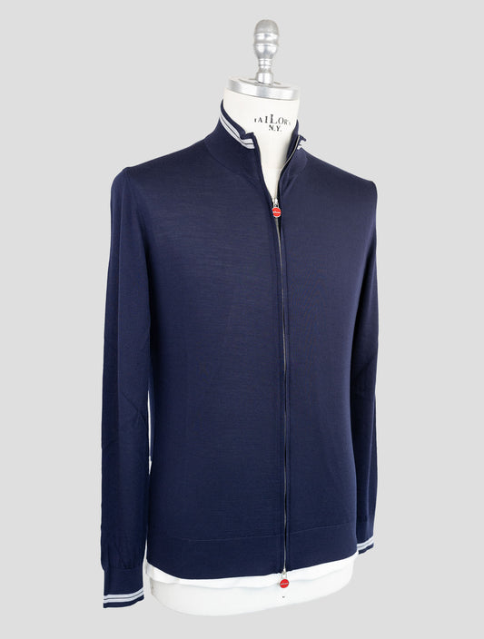 Kiton Premium Wool Full Zip Sweater Diamante Blue Italian