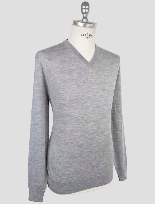 Kiton Premium Gray Wool V-Neck Sweater Diamante Blue