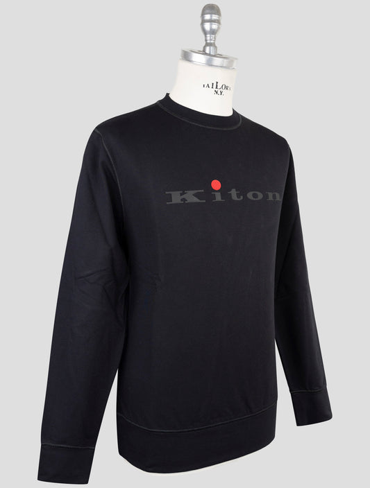 Kiton Black Cotton Crewneck Sweater - Italian Handmade Knitwear