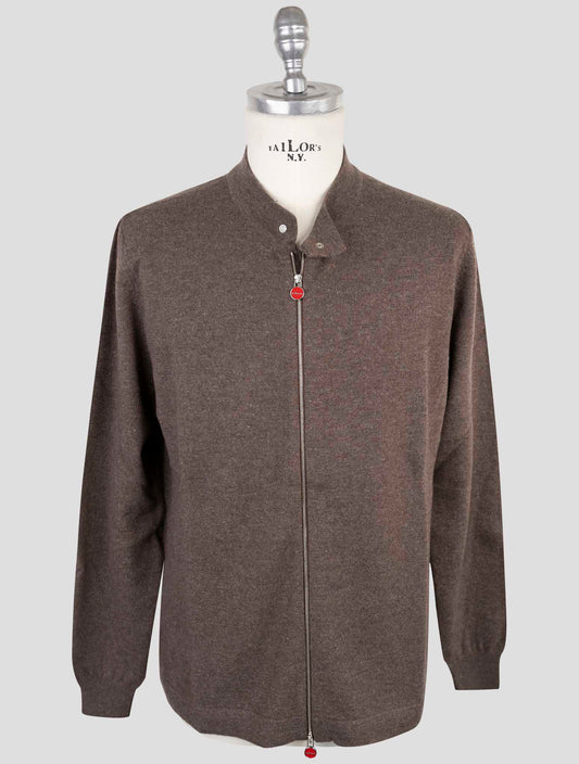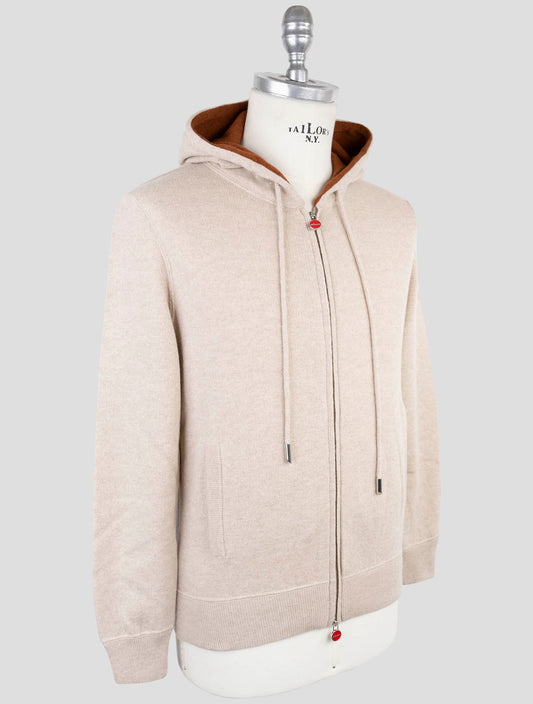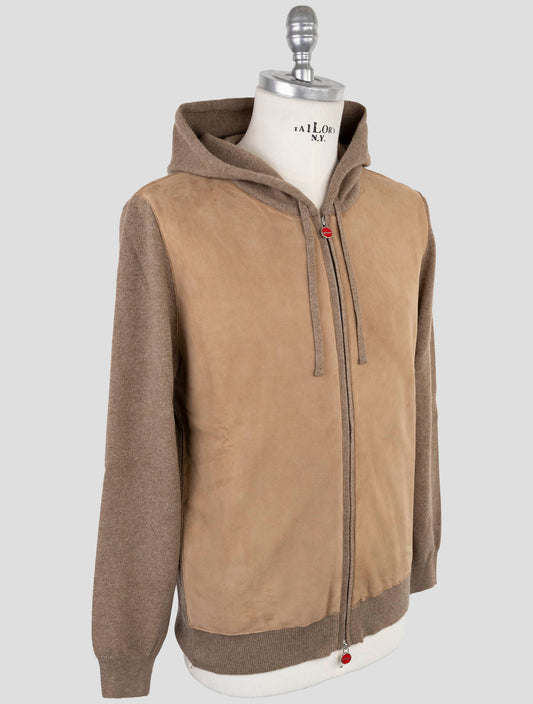 Sweat à Capuche en Cachemire et Cuir Suédé Marron Kiton