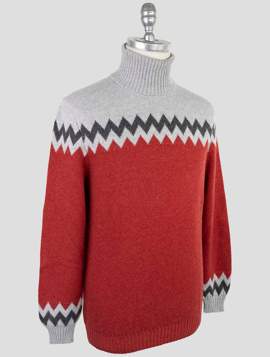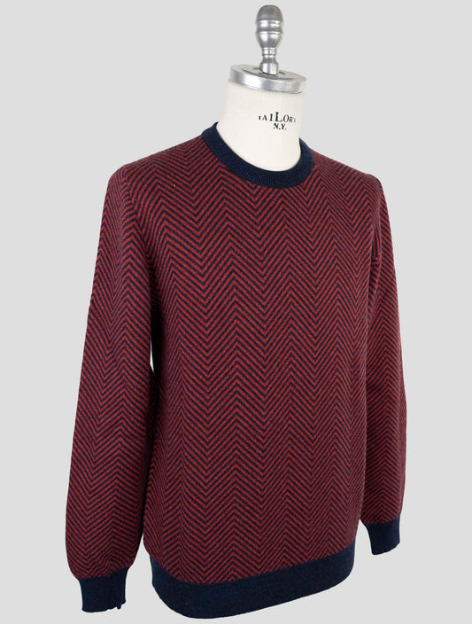 Pull Crewneck en Cachemire Rouge et Bleu Kiton