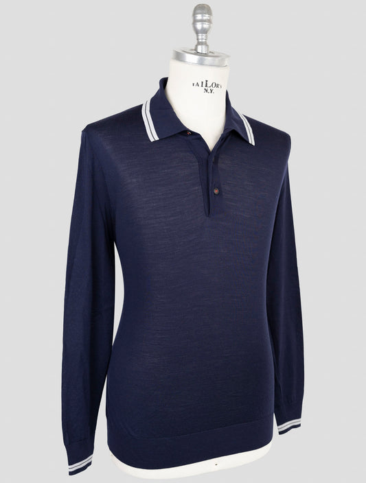 Polo en Laine Bleu 14 Microns Diamante de Kiton