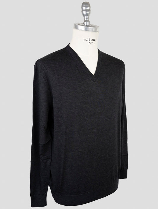 Pull V-neck en Laine Grise Diamante Bleu 14 Microns Kiton