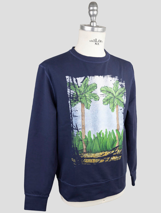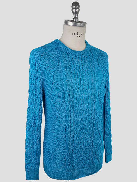 Kiton Blue Cotton Elastane Crewneck Sweater - Italian Luxury