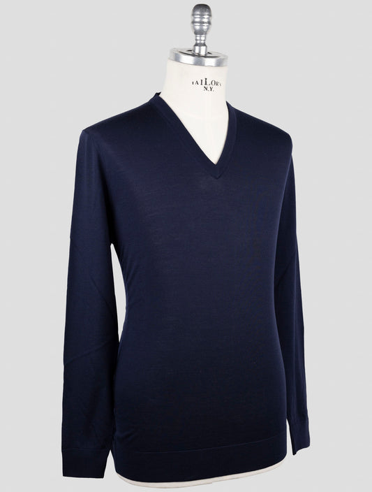 Pull V-Neck en Laine Bleue Kiton 14 Microns