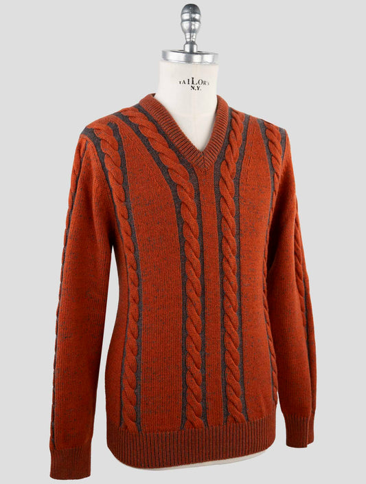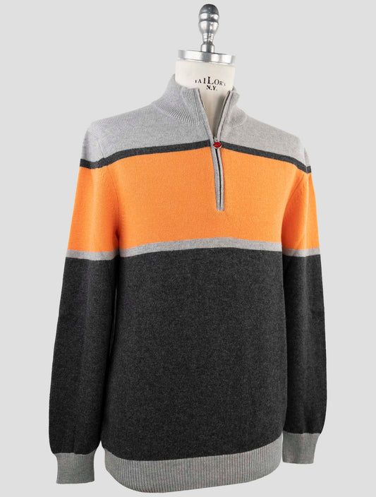 Pull en Cachemire Texturé Orange et Gris Kiton