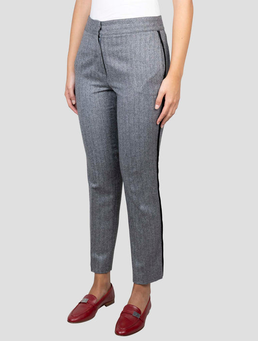 Kiton Handmade Wool Alpaca Plaid Trousers Gray Brown Women's