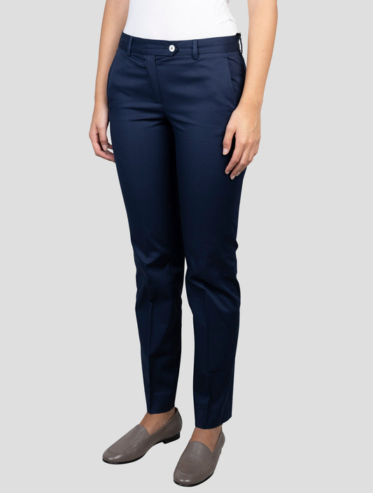 Kiton Women's Blue Cotton Pants - Italian Handmade Regular Fit