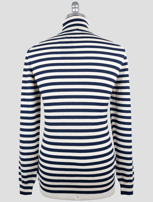 Kiton Handmade Cashmere Silk Turtleneck Striped White Blue