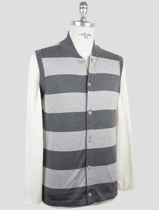 Kiton Men's Gray Cotton Cardigan - Handmade Italian Striped Knit