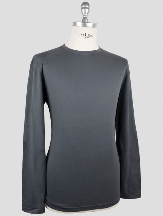 Kiton Premium Cotton Cashmere Long Sleeve T-Shirt Blue Handmade