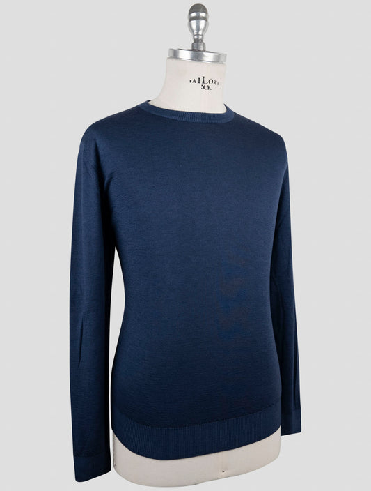 Kiton KNT Blue Cashmere Silk Crewneck Sweater Made in Italy