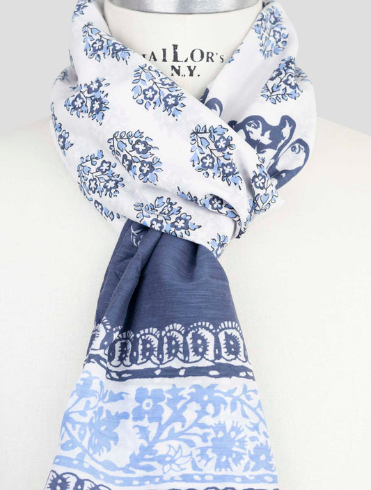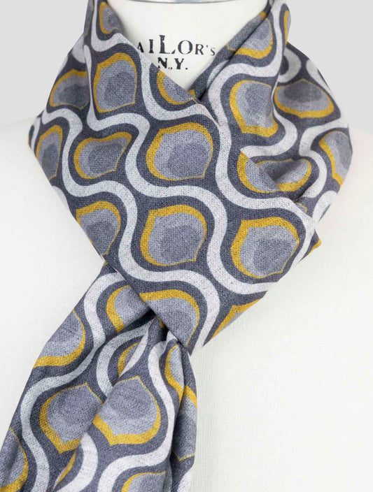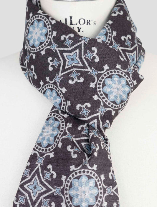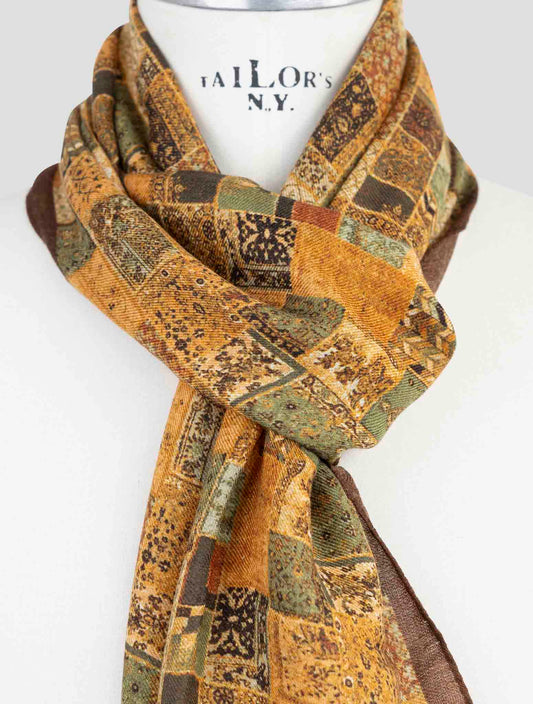 Kiton Silk Scarf 45x200cm Fantasy Pattern Multicolor Italian