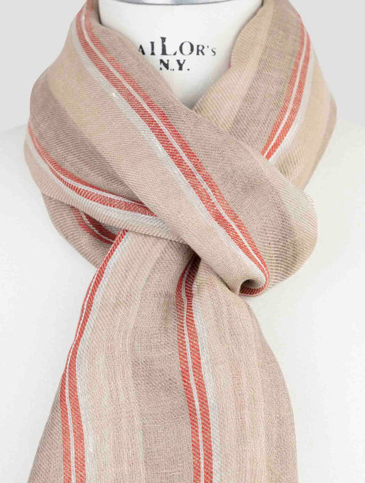 Kiton Italian Linen Scarf Beige Red Striped 72x180cm Premium
