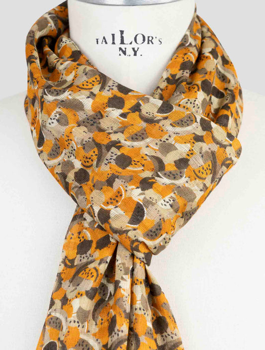 Kiton Handmade Italian Brown Linen Scarf - Floral Pattern Summer