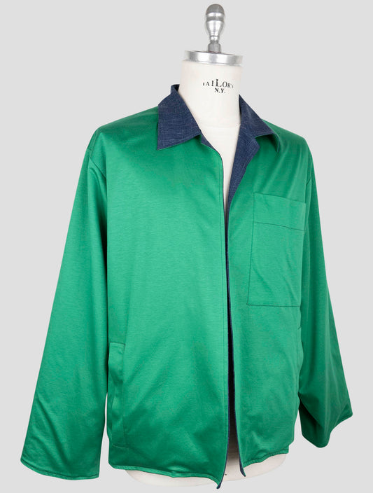 Kiton Reversible Wool Silk Linen Coat Green Blue Made in Italy